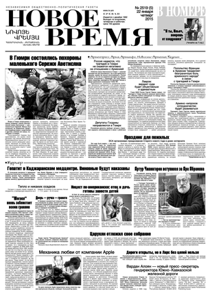 Общественно- политическая газета “Новое Время” была создана в 1992-м году и за 20 лет своего существования сумела заслужить среди армянских читателей право называться лучшей русскоязычной газетой в РА. Помимо сугубо политических тем издание обращается также к вопросам социальным, научным, культурным. Внимание уделяется и проблемам армянской диаспоры…
