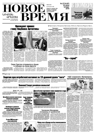 Общественно- политическая газета “Новое Время” была создана в 1992-м году и за 20 лет своего существования сумела заслужить среди армянских читателей право называться лучшей русскоязычной газетой в РА. Помимо сугубо политических тем издание обращается также к вопросам социальным, научным, культурным. Внимание уделяется и проблемам армянской диаспоры…