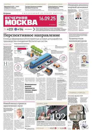 «Вечерняя Москва» — ежедневная российская вечерняя газета, старейшее из вечерних изданий в России, учрежденное в 1923 году. Выходит пять дней в неделю, кроме субботы и воскресенья. Отличается тем, что рассказывает о событиях еще не завершившегося дня. Оперативно освещает хронику и особенности жизни Москвы, охватывает все слои общества и большинство профессиональных и возрастных групп читателей.Издание представлено тремя выпусками – утренним ежедневным, вечерним (выходит три раза в неделю), еженедельным (выходит по четвергам).