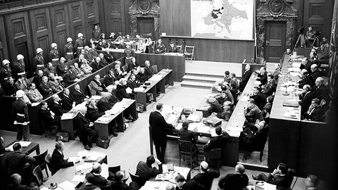 19 октября 1945 года Международный военный трибунал в Нюрнберге предъявил обвинение главным нацистским преступникам: Союз Советских Социалистических Республик, Соединенное Королевство Великобритании и Северной Ирландии, Соединенные Штаты Америки, Французская Республика обвиняют всех сидящих на скамье подсудимых в преступлениях против мира и военных преступлениях, в преступлениях против человечности и создании общего плана или заговора для совершения этих преступлений...